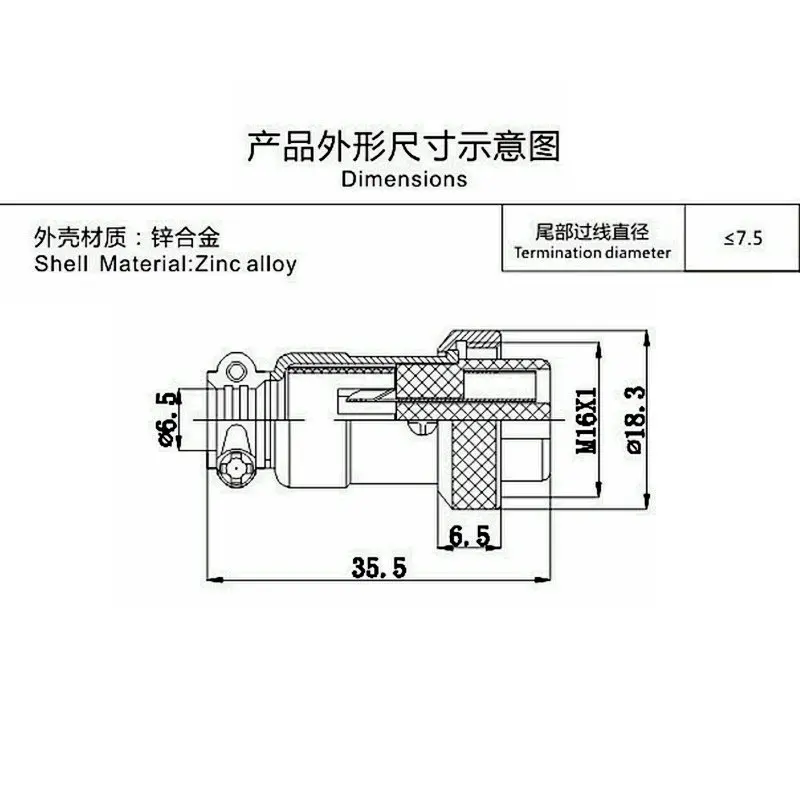 🔗 Connector Type: GX16 circular aviation plug — 16mm panel mount